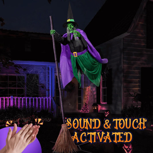 11.5ft Flying Witch on Broom Halloween Decor with Sound & Touch Activated