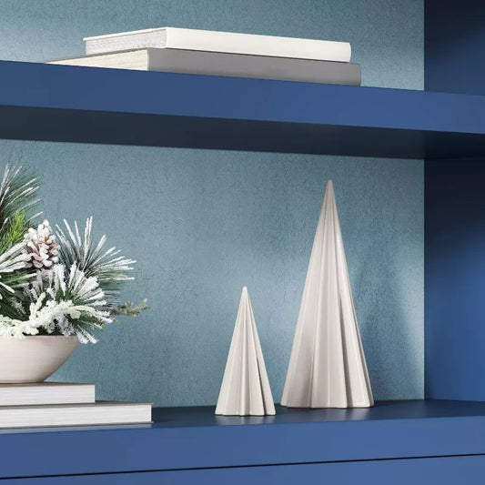 Piccolo Albero di Natale Decorativo in Ceramica con Bordo Ondulato Color Avorio