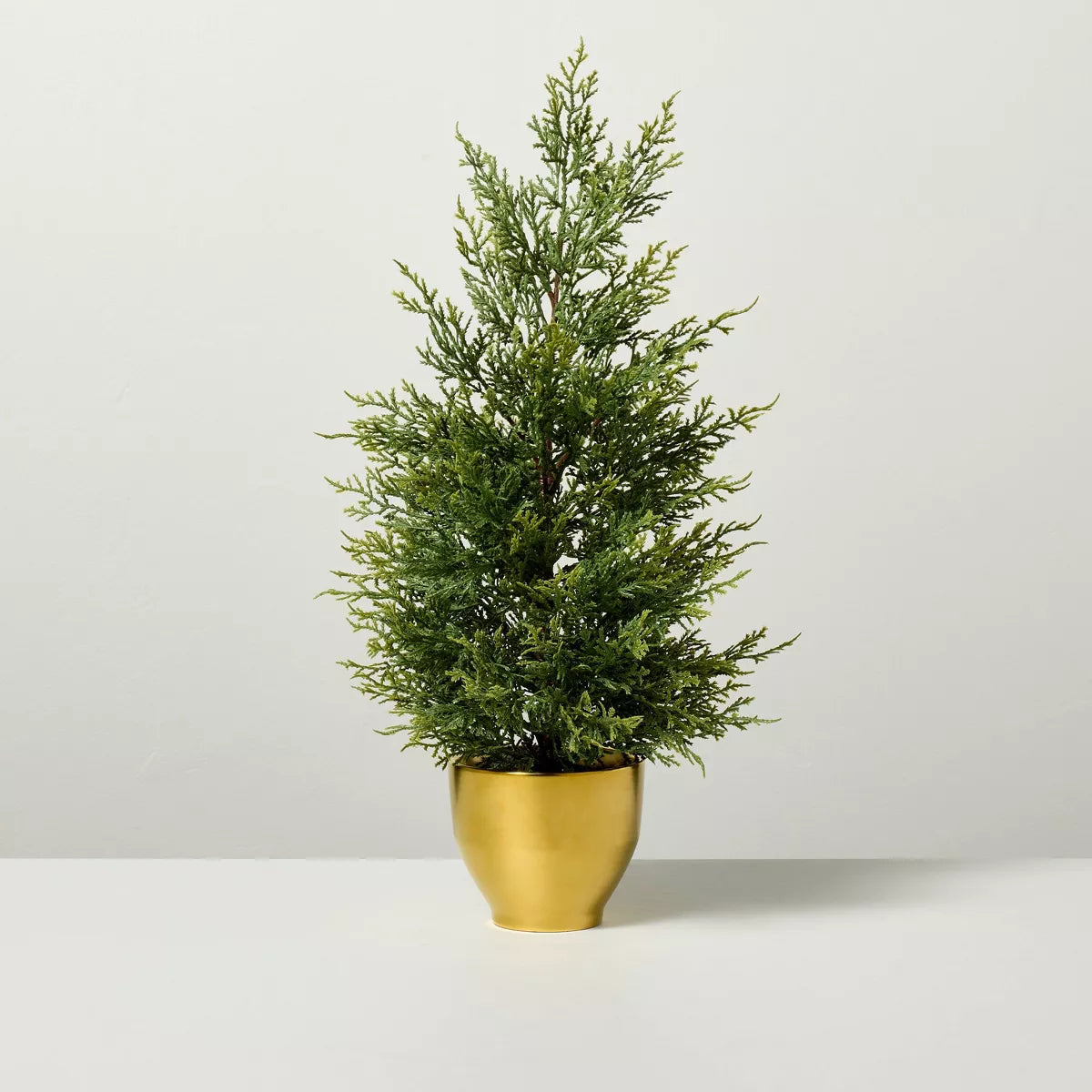 Albero di Cipresso Finto in Vaso di Ottone - Hearth & Hand con Magnolia