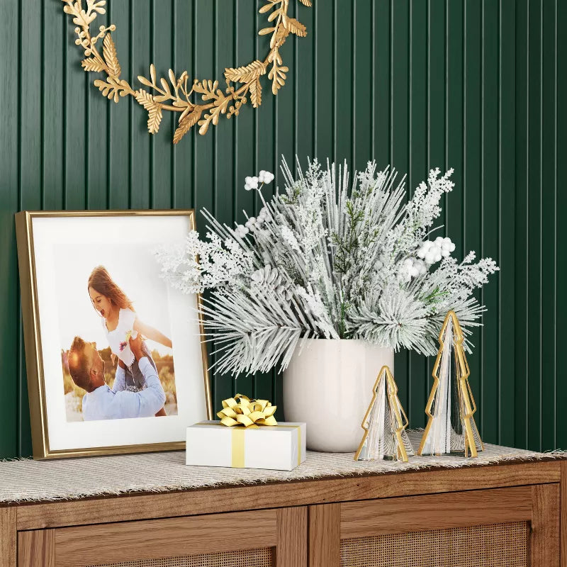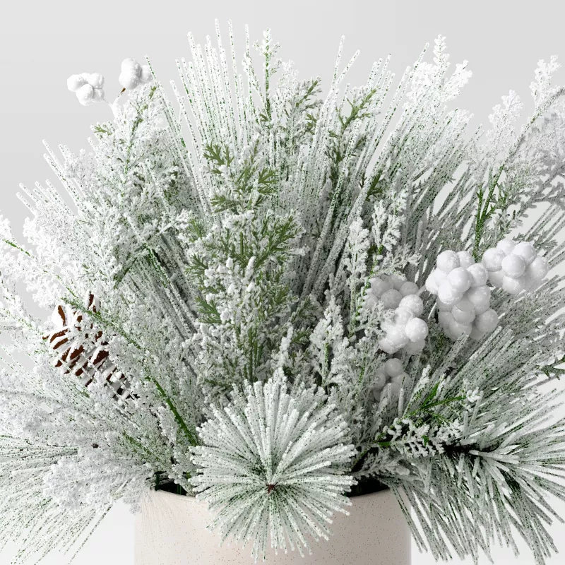 Crea una straordinaria esposizione festiva con questa Grande Composizione di Piante Artificiali Innevate di Threshold™. Questa composizione presenta piante artificiali di pino e cipresso innevate per un'atmosfera unica e accogliente. Inoltre, la composizione include un vaso in ceramica bianca per un look sofisticato. Posizionalo da solo su un caminetto, tavolino da caffè o tavolo console, oppure abbinalo ad altri accessori natalizi.