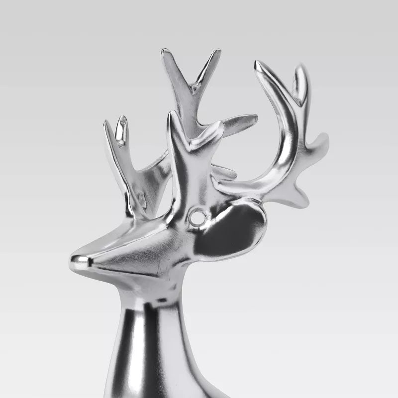 Aggiungi un tocco di dolce fascino alla tua esposizione natalizia con questa Renna Natalizia Segmentata Argento di Threshold™. Questa figurina decorativa raffigura una renna con corna in posizione eretta. Realizzata in metallo e caratterizzata da una finitura argento lucida, questa figurina di renna in piedi è un ottimo pezzo d'accento per il tuo caminetto, tavolo console o tavolino da caffè.