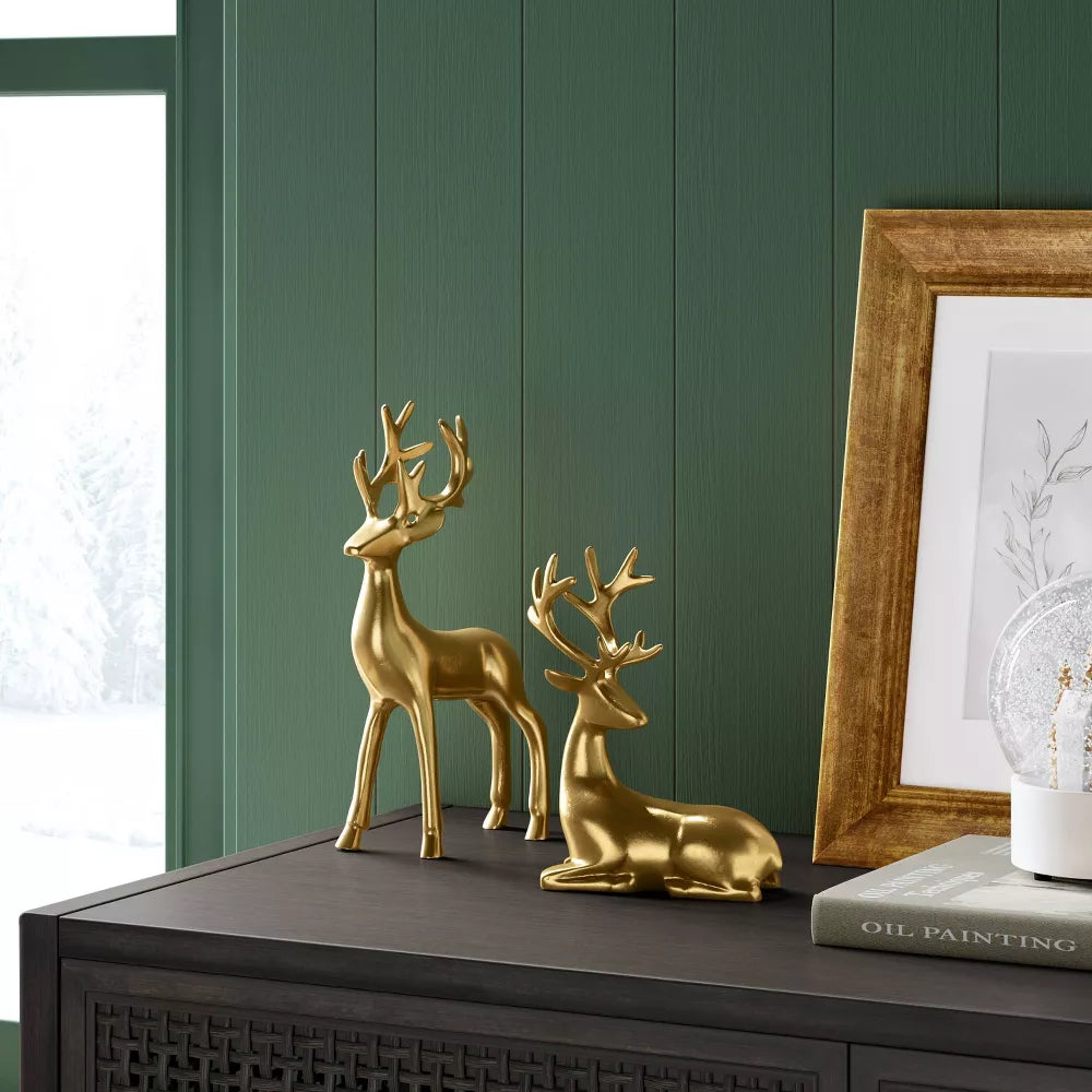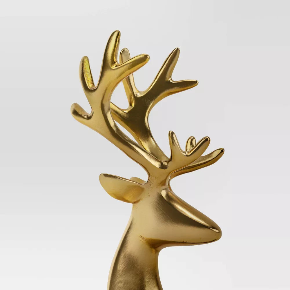Aggiungi un tocco di natura al tuo arredamento natalizio con questa figurina di renna seduta di Threshold™. Realizzata in metallo, questa figurina di renna seduta è progettata con una finitura dorata che aggiunge eleganza alla tua decorazione festiva. Con un'altezza di 6,5 pollici, questa figurina natalizia può essere posizionata da sola sul tavolo o abbinata ad altri elementi decorativi.