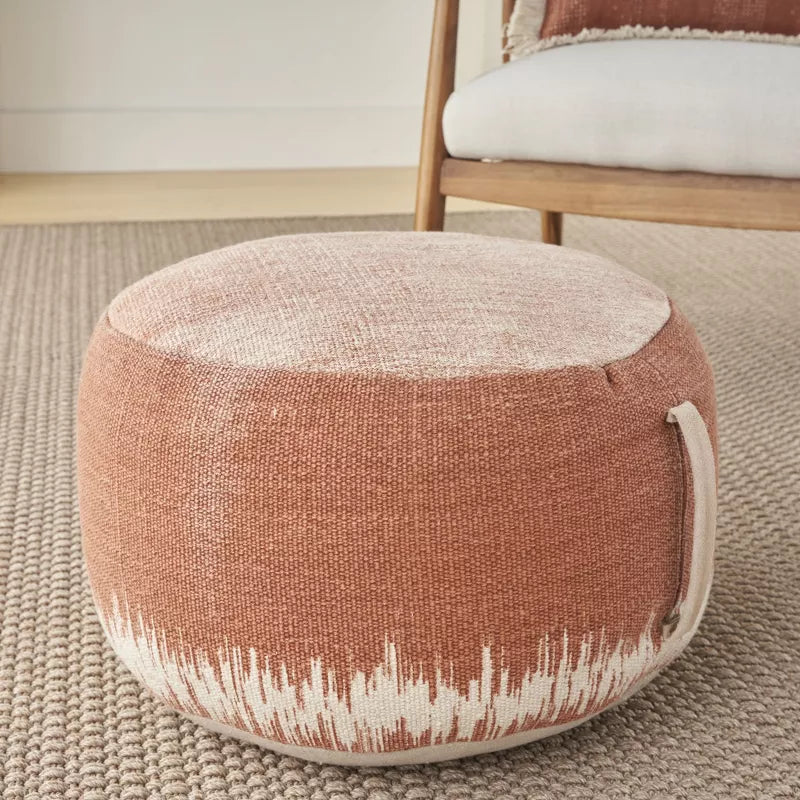 Realizzato in cotone con una silhouette rotonda, questo pouf Mina Victory è un elemento indispensabile per il momento del relax. In puro stile contemporaneo, il suo colore si fonde in un motivo lineare frastagliato in morbido avorio. L'interno di questo pouf è riempito con perline di poliestere e polistirene per un supporto robusto come seduta o come appoggio per i piedi dopo una lunga giornata. Include una maniglia laterale in tessuto marrone per un facile trasporto da una stanza all'altra. Dimensioni: 50 cm (L) x 50 cm (P) x 30 cm (A).