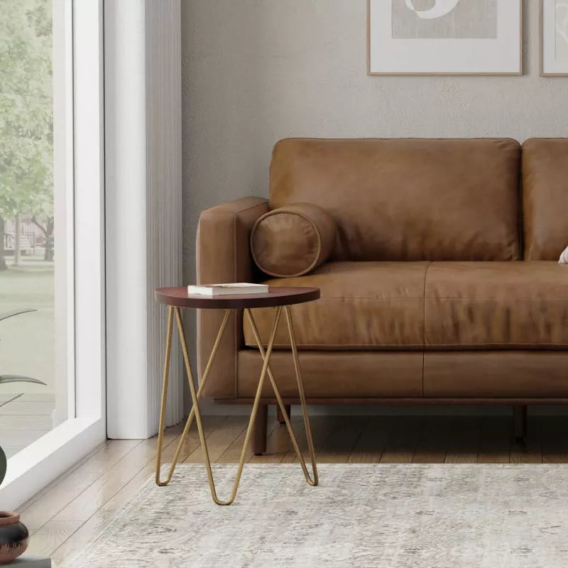 Aggiungi un tocco di stile moderno di metà secolo alla tua casa con il Tavolino Tillman in Metallo e Legno. Questo tavolino presenta gambe a forcina con un piano unico in legno massello. La finitura oro opaco, in linea con le tendenze attuali, completerà il tuo arredamento. Un pezzo d'accento unico per arricchire il tuo soggiorno, ingresso o camera da letto.
