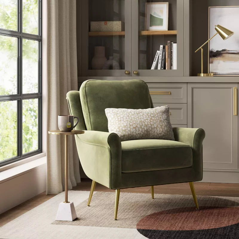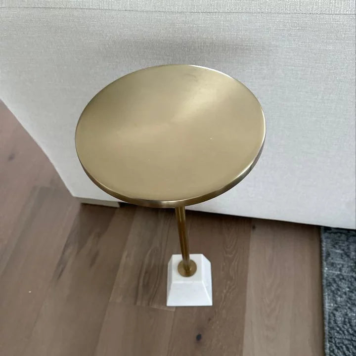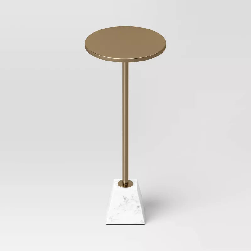 Il Tavolino da Bevande in Marmo di Threshold™ è un'aggiunta straordinaria per la tua casa. Realizzato con una bellissima base in metallo effetto marmo e caratterizzato da una silhouette elegante, questo tavolino indipendente porterà uno stile chic di metà secolo nel tuo arredamento. È un elemento d'accento accattivante accanto a un divano o una poltrona, e la superficie rotonda da 25 cm è della dimensione perfetta per posizionare una bevanda o un libro.